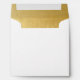 Simple square 5.25" x 5.25" invitation, card, and announcement mailing envelopes with printed return address and faux gold foil effect stripe on the back flap and inside.