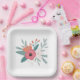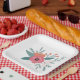 Wildflower paper party plates with pink, orange, and white flowers. Colourful and feminine design.