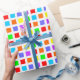 A simple bold repeating pattern of squares. Available in a variety of colours and combinations. The background colour can also be changed providing lots of custom options.