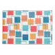 This pillowcase has a geometric design of squares in tangerine, poppy, coral, and shades of teal scattered about with their outlines.