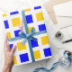 A simple bold repeating pattern of squares. Available in a variety of colours and combinations. The background colour can also be changed providing lots of custom options.