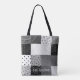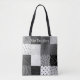 This original black and white patchwork design gives this cool tote bag a vintage look. The patchwork fabric image is a section taken from a photograph of an original patchwork fabric blanket I made. The traditional patchwork has been photographed to show it looking natural and with a "pre-loved" appearance, you may even see a few pet hairs! and there will be bobbly bits, stray threads and creases, this all makes up the fun look of a much loved retro patchwork design. The natural look of the unique image on this one off bag gives it a quirky, fun style. This is a customisable tote bag, you can personalise it, back and front, with your own text.