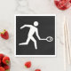 A squash player icon in white on a black background. This design looks really effective on these Paper Napkins