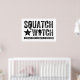 Be on the watch for the SQUATCH! I do believe there's a squatch in these woods! Grunge, distressed style block text with two bigfoot sasquatch creatures in the letters. Join team squatch watch!