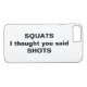 Ce drôle noir et blanc, coque iphone est décoré avec la citation, Squats je pensais que vous avez dit Chaussures, ce qui en fait l'envie à la salle de sport et parfait pour votre prochaine séance d'entraînement.