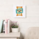 This funky mid century modern clock features squeezed and outstretched rectangle shapes In turquoise blue, cream, and orange. Starburst accents in pink, blue, gold, and black highlight the design. Fab!