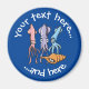 Three cute squid cartoons and a triton sea shell. Custom background colour. Two text fields on circle.