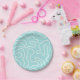 Squiggle Maze Abstract Pattern in Aqua Teal Pastel Paper Plate