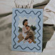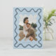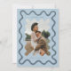 Whimsical and quirky wedding thank you card featuring a hand drawn wavy line around your photo. Blue.