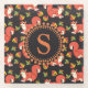 Squirrel and Autumn Leaf Pattern Monogram Glass Coaster