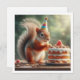A super cute illustration of a squirrel eating a birthday cake and wearing a party hat. This is the perfect card for squirrel lovers and lovers of small critters as well as nature lovers.