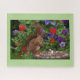 Beautiful photo of a squirrel dining in a garden, framed in pale green, is featured on this 16" long by 20" wide puzzle. This {520 pieces} puzzle arrives in a gift box with puzzle picture printed on top. Makes a great gift for garden, nature, squirrel and puzzle lovers. Not for small children under 6 years of age due to choking hazard, (small parts). Made in the USA.
