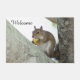 A Doormat with a photograph of a cute Squirrel eating a corn chip, with the word 'Welcome'. You can change the word Welcome or delete the text. Squirrel was photographed in South Florida.