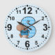 Squirrel for the Letter S in Blue Diamond Pattern Large Clock