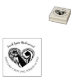 A linocut print of a squirrel in a heart is circled by your name and return address