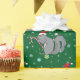 Here's a unique, funny and cute way to wrap up your holiday gifts: a cartoon-like illustration of a grey squirrel wearing a Santa hat and licking a candy cane as pastel snowflakes fall around him.