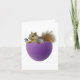 A squirrel sits in a purple eggshell holding a small blue flower. Send out this Spring card this Easter.