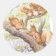 Little squirrels meet on the limb of a tree. Adapted artwork from Beatrix Potter. Soft colours