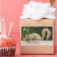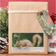Photograph of squirrel on fence with the word "hey" (customizable) written above.