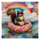 Squirrel on Floating Glazed Doughnut Funny Vacatio Poster