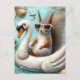 Fantasy funny AI generated art of a squirrel having fun on an inflatable swan on summer vacation at the lake
