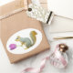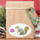 A squirrel holds a pink tulip blossom on these sweet spring stickers.