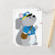 A cute little squirrel dressed like a postman is delivering a letter with a heart stamp