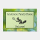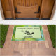 Welcome guests to your home in style with this fun and sporty door mat! A cute squirrel with a tennis racket stands ready to greet you, just change the text with your family's name! Cool green background makes a great housewarming (or apartment warming!) gift for racquet sports fans.