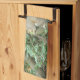 This awesome kitchen towel features a photograph of a cute fluffy grey squirrel clutching an acorn and sitting in a tree in the forest.