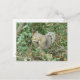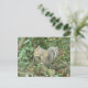 This cute postcard features a photograph of a cute fluffy grey squirrel clutching an acorn and sitting in a tree in the forest.