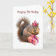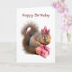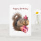 A squirrel wearing a party hat holds a wrapped birthday present on this sweet birthday card. "Happy Birthday" or customize to write your own words.