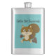 The product is a good size and came exactly as it was pictured. The lid is not attached to the flask, which could be dangerous on drunken nights... The print came out surprisingly well and looks very sharp. Would definitely recommend.