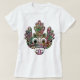 This design is a modern reinterpretation of a Sri Lankan traditional mask, keeping the fierce expression with large eyes, wide mouth, and fangs, but replacing the usual serpents or flames with peacock-like feathers and bird faces. The traditional fiery colours are swapped for iridescent greens, purples, pinks, and whites, giving it a bold yet contemporary graphic style while still preserving its cultural essence.