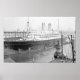 The SS Rotterdam is berthed at the NASM dock's in Hoboken, New Jersey. There's great clarity and detail in this cleaned up old photograph.