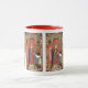 The choice is yours whether to add a colourful background to this handsome mug or to leave it as is! + St. Alphonsus Maria de Liguori (1696–1787) was an Italian nobleman, a lawyer turned priest, prolific writer, founder of the Redemptorists, Bishop, and Doctor of the Church. Here, in a chapel setting against a red brick background, he stands wearing his Bishop’s robes—mitre and cope—and carrying his crosier or pastoral staff. His right hand is raised in blessing. In art, when portrayed at an angle to the viewer as in this image, he has a noticeably humped back and a chin tucked into his chest. In May 1768, he had been struck with a terrible attack of rheumatic fever that lasted over a year and left him permanently crippled until his death some twenty years later. For this reason, he is patron saint of rheumatoid arthritics and the aged ill. + Feast: August 1 + Image Credit (SAU 039): Antique image of St. Alphonsus Liguori from a late 19th-century devotional print in chromolithography, originally published by Socièté de St. Augustin, Bruges, Belgium, from the designer’s private collection of religious ephemera.
