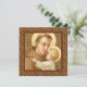 St. Anthony of Padua (1195-1231) is one of the Church’s most popular saints. First introduced as an artistic motif in the 17th century, St. Anthony holding the Christ Child has been translated into all manners of artistic media across the globe, especially wherever Franciscan missionaries have spread the Word. In this splendid depiction, the Christ Child kneeling on a book (another of St. Anthony’s attributes but not visible here) reaches up to embrace him while St. Anthony, clad in the traditional brown Franciscan habit, gazes at the toddler Jesus with wonder and love. + Feast: June 13 + Image Credit (JM 05): Detail of an antique image of St. Anthony of Padua, originally published in chromolithography by Josef Müller Art Publisher, Munich and New York, first quarter of the 20th century, from the designer’s private collection of religious ephemera. This is just one of over sixty images in a very popular style of devotional prints issued in several sizes and formats by Müller at the turn of the last century. + Prefer a solid coloured background or a different colour scheme? Delete the pattern image and see the Colour Palette postcard for recommended hues. Colour Palette postcards are found in an image's associated COLLECTION and in the Special COLLECTION devoted just to colour palettes.