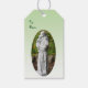 This pack of religious gift tags features a statue of St. Anthony with Christ child among rocks and fallen leaves. The image is on both front and back. It is said that when Saint Anthony died the children cried in the streets and that all the bells of the churches rang of their own accord. When something is lost one says "Dear St. Anthony, look around, something's lost, and can't be found" and it will appear!