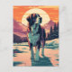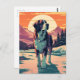 Colourful Art with a St.Bernard dog in the snowy mountain forest during sunset