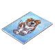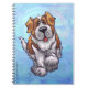 Animal Parade Cute St. Bernard Dog Photo Notebook created by Imagine That! Design features our cute tan and white dog character standing in a grassy yard with a red brick fence, a textured blue sky and a playful wavy purple border painted by our talented children's book artist, Traci Van Wagoner. The fun pup stands in play position with one paw raised. This fun pet art is perfect for St. Bernard dog lovers and humourous animal art lovers of all ages. On many of our whimsical St. Bernard doggy products you'll find this cute puppy coming and going with the playful Saint Bernard dog's head on one side and the funny dog's tail on the other. Join the Animal Parade and bring a smile to the face of someone you love with a gift of our cute St. Bernard dog. Woof!