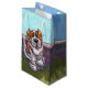 Animal Parade Cute St. Bernard Dog Gift Bag created by Imagine That! Design features our cute tan and white dog character standing in a grassy yard with a red brick fence, a textured blue sky and a playful wavy purple border painted by our talented children's book artist, Traci Van Wagoner. The fun pup stands in play position with one paw raised. This fun pet art is perfect for St. Bernard dog lovers and humourous animal art lovers of all ages. On many of our whimsical St. Bernard doggy products you'll find this cute puppy coming and going with the playful Saint Bernard dog's head on one side and the funny dog's tail on the other. Join the Animal Parade and bring a smile to the face of someone you love with a gift of our cute St. Bernard dog. Woof!