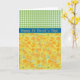 A pretty Greeting Card for St David's Day, with a pattern of golden daffodils, from a handpainted watercolour design by Judy Adamson, teamed with a coordinating green check gingham pattern.