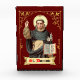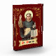 St. Dominic de Guzman (1170-1221) was a Castilian Spanish priest who founded the mendicant Order of Preachers (Dominicans). + Arm upraised with his finger pointing to heaven, St. Dominic is depicted here preaching. He is tonsured and is clad in the habit of his order—a belted cream-coloured robe and cream-coloured scapular under a black hooded mantle. A rosary hangs from his belt. With his left hand, he holds a spray of lilies of purity and an open book. The pages of the book bear the words “Aut pro Deo; Aut de Deo”, that is, “Either for God or about God”. According to the testimony of Brother Paul of Venice, a priest of the Order of Preachers, at the canonization hearing of St. Dominic at Bologna in August, 1233, the founder always spoke to God or about Him. So near and dear to his heart were these practices that St. Dominic recommended them to his brethren. They were also adopted in Article 31 of the Primitive Constitutions of the Order of Preachers. + Feast: August 8 + Image Credit (BEN 002): Figure of St. Dominic extracted from an antique Swiss devotional print originally published in chromolithography by Benziger, Einsiedeln, Switzerland, late 19th century, from the designer’s private collection of religious ephemera.