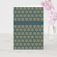 A pretty Greeting Card for St Dwynwen' s Day with a pattern of red and green hearts in a Folk-art style on a dark blue background and 'Happy St Dwynwen's Day' in Welsh.