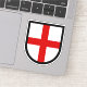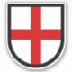 Our St. George’s Shield is based on the English Flag of St. George (q.v.). It is blazoned with a red cross on a white field. The symbol is an old one. In the Middle Ages, representations of Saint George as a crusader knight depicted him bearing such shields with red-on-white crosses. + Image Credit (St. George's Shield): Saints_Aplenty.