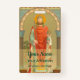 In this image done in the Beuron style of Benedictine art, St. Henry II (972-1024), Holy Roman Emperor, wears Imperial regalia—a crown, an ermine-lined vermillion red cloak over a teal robe, and carries a sceptre and orb symbolic of his temporal power. His crown, the Reichskrone, or Imperial Crown of the Holy Roman Empire, is a distinctive one comprised of eight hinged arch-shaped metal plates surmounted by a cross in the front with a high hoop connecting the front of the crown to its back. A layman and not a consecrated religious, nevertheless, St. Henry was known for his personal holiness practicing Benedictine values as an Oblate. St. Henry is patron saint of Benedictine Oblates as well as people rejected by religious orders, the physically challenged, and childless couples. + Feast: July 13 + Image Credit (BBS 10): Antique image of St. Henry II, Emperor, OSB [Order of St. Benedict], originally published in chromolithography by B. Kühlen, Mönchengladbach, Germany (Series Benedictina, Schola art. Beuron., unnumbered), late 19th-early 20th century, from the designer’s private collection of religious ephemera.