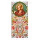 Add your text to the blank back of this versatile hand-out. + Prefer a different colour on the back? See the suggested coordinating hues on the Colour Palette postcard for this image. Colour Palette postcards are found in an image's associated COLLECTION and in the Special COLLECTION devoted just to colour palettes. + Image Credit (JMAS 04): Antique image of St. James the Greater from a late 19th century devotional print in chromolithography with gilt accents originally published by Josef Müller, Art Publisher, Munich, Germany, from the designer’s private collection of religious ephemera. The image is one of twelve in the publisher’s Apostle Series (No. 12155). + St. James is holding a pilgrim’s staff with a hook for suspending a water flask. + Feast: July 25 + The lush floral ornamentation derives from miniatures, that is, the small illustrations used to decorate ancient or medieval illuminated manuscripts, in the Vatican Library.