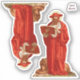 With landscape elements + Formally known as Eusebius Sophronius Hieronymus in Latin, St. Jerome (c. 347-420) was born to wealthy pagan parents of Illyrian descent at Stridon, a town now lost to history that was once located near the Adriatic coast in either northeast Italy or the Balkans. As a teenager in Rome, he lived a dissolute lifestyle he would later come to bitterly regret. Baptized in 365, he became a nominal Christian and studied law. Widely travelled and well-educated, he experienced a vision during an illness c. 373/4 that turned him from secular pursuits to the serious study of theology and a life of ascetic repentance. He became a monk, priest, secretary to a pope, theologian, and historian. In 388, he settled at last in Palestine and spent the remainder of his life working in a cave near Bethlehem, the very cave where Jesus was believed to have been born. The result was the work for which he is best known: his translation of most of the Bible into Latin--the translation known as the Vulgate--and his commentaries on the Gospels. One of the most learned men of his day, St. Jerome is a Doctor of the Church and—with SS. Augustine, Ambrose, and Gregory I the Great–one of the Four Latin Church Fathers. He died of old age. + It was during his tenure as secretary to Pope Damasus I (c. 305-384) that St. Jerome earned his red robes and Cardinal’s hat as pictured here… in art and literature, at least. The office of Cardinal as such did not exist in the late fourth-early fifth century; hence, his garb is anachronistic. However, in the Middle Ages, the most widely read and most influential book--after the Bible, of course--was The Golden Legend (or Legenda Aurea Sanctorum) by Bl. Jacobus de Voragine (c. 1226-1298). Accustomed to a Papal Secretariat staffed with Cardinals in his time, Voragine erroneously wrote that St. Jerome “was ordained a Cardinal Priest in the Church of Rome.” Contemporary artists retrofitted St. Jerome accordingly, and a Cardinal’s dress became ever after one of the established features of his iconography. (We particularly like the rakish angle at which St. Jerome wears his galero in this late 19th-century devotional print--even if it is due to the tilt of his head as he reads from one of his books!) + The lion at St. Jerome’s feet is another symbol often associated with him. According to tradition (read: The Golden Legend again), during his sojourn as a monk in the Syrian desert, St. Jerome earned the trust and eternal gratitude of a lion by removing a thorn from its paw. The lion became his devoted companion. + St. Jerome is patron saint of archaeologists, librarians, archivists, translators, students, and Bible scholars. + Feast: September 30 + Image Credit (P 004): Figures extracted from an antique image of S. Hieronymus [St. Jerome] from a late 19th-century devotional print in chromoxylography, originally published by Friedrich Pustet, Regensburg, New York, and Cincinnati. From the designer’s private collection of religious ephemera.