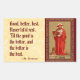 Formally known as Eusebius Sophronius Hieronymus in Latin, St. Jerome (c. 347-420) was born to wealthy pagan parents of Illyrian descent at Stridon, a town now lost to history that was once located near the Adriatic coast in either northeast Italy or the Balkans. As a teenager in Rome, he lived a dissolute lifestyle he would later come to bitterly regret. Baptized in 365, he became a nominal Christian and studied law. Widely travelled and well-educated, he experienced a vision during an illness c. 373/4 that turned him from secular pursuits to the serious study of theology and a life of ascetic repentance. He became a monk, priest, secretary to a pope, theologian, and historian. In 388, he settled at last in Palestine and spent the remainder of his life working in a cave near Bethlehem, the very cave where Jesus was believed to have been born. The result was the work for which he is best known: his translation of most of the Bible into Latin--the translation known as the Vulgate--and his commentaries on the Gospels. One of the most learned men of his day, St. Jerome is a Doctor of the Church and—with SS. Augustine, Ambrose, and Gregory I the Great–one of the Four Latin Church Fathers. He died of old age. + It was during his tenure as secretary to Pope Damasus I (c. 305-384) that St. Jerome earned his red robes and Cardinal’s hat as pictured here… in art and literature, at least. The office of Cardinal as such did not exist in the late fourth-early fifth century; hence, his garb is anachronistic. However, in the Middle Ages, the most widely read and most influential book--after the Bible, of course--was The Golden Legend (or Legenda Aurea Sanctorum) by Bl. Jacobus de Voragine (c. 1226-1298). Accustomed to a Papal Secretariat staffed with Cardinals in his time, Voragine erroneously wrote that St. Jerome “was ordained a Cardinal Priest in the Church of Rome.” Contemporary artists retrofitted St. Jerome accordingly, and a Cardinal’s dress became ever after one of the established features of his iconography. (We particularly like the rakish angle at which St. Jerome wears his galero in this late 19th-century devotional print--even if it is due to the tilt of his head as he reads from one of his books!) + The lion at St. Jerome’s feet is another symbol often associated with him. According to tradition (read: The Golden Legend again), during his sojourn as a monk in the Syrian desert, St. Jerome earned the trust and eternal gratitude of a lion by removing a thorn from its paw. The lion became his devoted companion. + St. Jerome is patron saint of archaeologists, librarians, archivists, translators, students, and Bible scholars. + Feast: September 30 + Image Credit (P 004): Antique image of S. Hieronymus [St. Jerome] from a late 19th-century devotional print in chromoxylography, originally published by Friedrich Pustet, Regensburg, New York, and Cincinnati. From the designer’s private collection of religious ephemera.