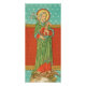 Add your text to the back of this versatile blank hand-out. + Here, a mature, grey-haired St. Joseph stands atop a globe in front of a red wall hanging with golden yellow trim and tassels. The tapestry is patterned with equal-armed crosses enclosed in rotated squares. How it is hung defies logical explanation because the background consists of an infinitely deep aqua-blue sky bespattered with stars. + St. Joseph is richly garbed in strong colours. His robe is red; his mantle, green with a dark aqua lining and golden yellow borders. He holds a spray of white lilies symbolizing purity in his right hand and an L-shaped brown wooden carpenter’s rule indicative of his profession in his left. + Beneath St. Joseph’s sandaled feet are a small dragon, a crown, a scroll, and a globe inscribed with the names of the populated continents—Asia, Australia, (North and South) America, Africa, and Europe. The dragon and the scroll represent threats to the Church. The dragon signifies Satan; the scroll, heresies by being a précis of Blessed Pope Pius IX’s 1864 Syllabus of Errors, a document articulating 19th-century philosophical and political positions hostile to Catholicism. The scroll reads: Non serviam (“I will not serve”) / Atheismus (Atheism) / Odium Ecclesiae (Hatred of the Church) ~ S. Pontifice (The Pope) ~ Episcopi (Bishops) ~ Presbyteri (Priests) / Liberalism. The phrase “Non serviam”, that is, “I will not serve”, is attributed to Satan who rejected God and was banished from heaven. Atheism, Anticlericalism, and Liberalism are self-explanatory and were movements that shaped Pius IX’s policies, especially regarding the unification of Italy and its rise as a modern nation-state. The towering figure of St. Joseph stamps out heresy and tramples underfoot Satan’s power over the world by crushing the dragon beneath his feet toppling the crown from the dragon’s head. + A much more elaborate, near-contemporary variant was issued as a black and white lithograph. (Compare our DT 01.) Like the black-and-white litho, this chromo- or colour lithograph was published to promulgate Pope Leo XIII’s “Prayer to St. Joseph” of 1889. + Principal Feast of St. Joseph: March 19; Feast of St. Joseph the Worker: May 1 + Image Credit (VVP 09): Antique chromolithograph of Saint Joseph, Protector of the Church, Pray For Us [H. Jozef, beschermer der H. Kerk, B.V.O.] originally published by K[arel] v[an] d[er] Vyvere-Petyt, Bruges, Belgium, c. 1890, from the designer’s private collection of religious ephemera.