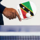Stylish, personalized KITTITIAN PING PONG PADDLE showing embossed-look map outline and flag of ST KITTS & NEVIS. The placeholder name is CUSTOMIZABLE so you can personalize with your name or text.